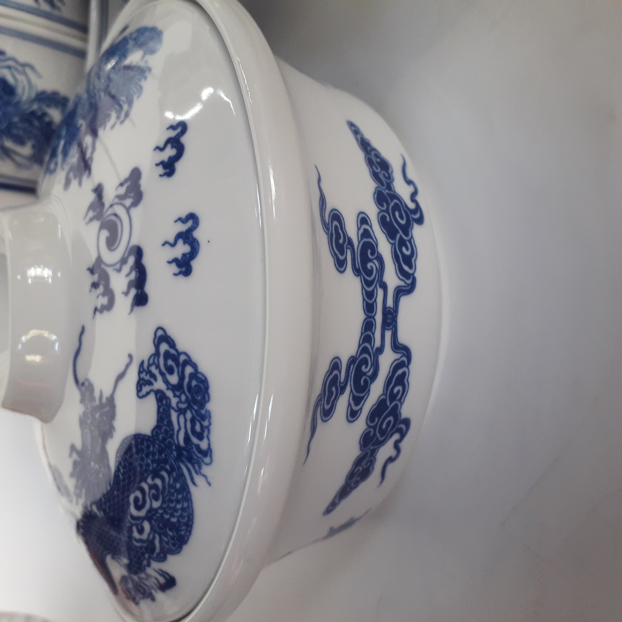 Bộ thờ cúng men lam vẽ kĩ Bát Tràng cho ban thờ 1m97 - 2m17 - Gốm sứ Thuận Thiên - GSTT007 #gomsu