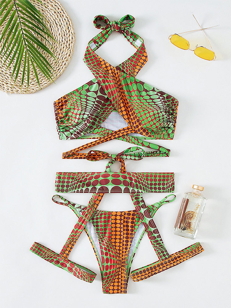 Bikini Tam Giác Kèm Khăn Lưới Chất liệu Polyester Đây là chất liệu không quá xa lạ đối với may đồ bơi nữ. Sợi Polyester rất nhẹ, có khả năng chống thấm và khô nhanh.