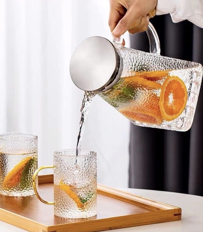 ✨BỘ BÌNH ĐỰNG NƯỚC UỐNG THỦY TINH CHỊU NHIỆT CAO CẤP KÈM 6 LY ĐÁY CẠNH - ANTH580
