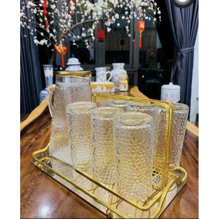 Bộ khay bình nước 6 cốc thuỷ tinh cao cấp