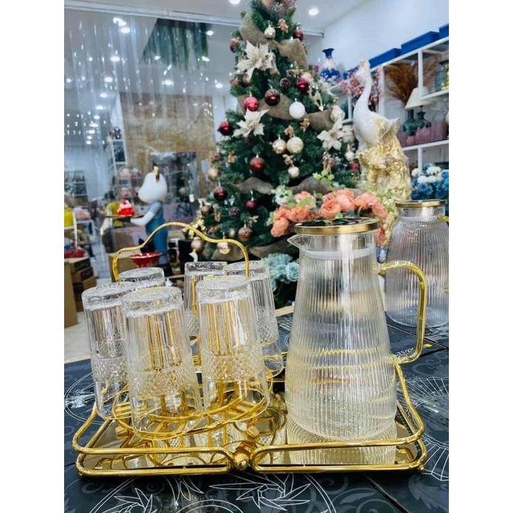 Bộ bình 6 cốc thủy tinh chịu nhiệt pha lê sang trọng#giadungtienich