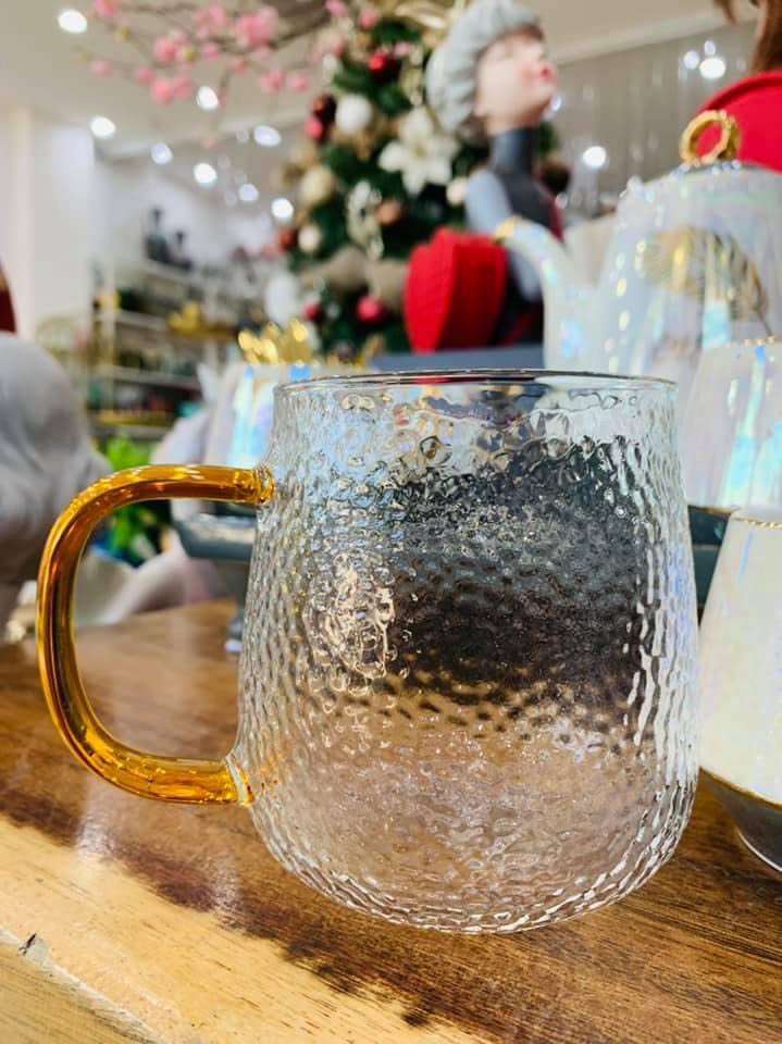 ✨BỘ BÌNH THỦY TINH CHỊU NHIỆT CAO CẤP ĐỰNG NƯỚC UỐNG KÈM 6 CỐC QUAI VÀNG ( 1 BÌNH + 6 CỐC) - VD6