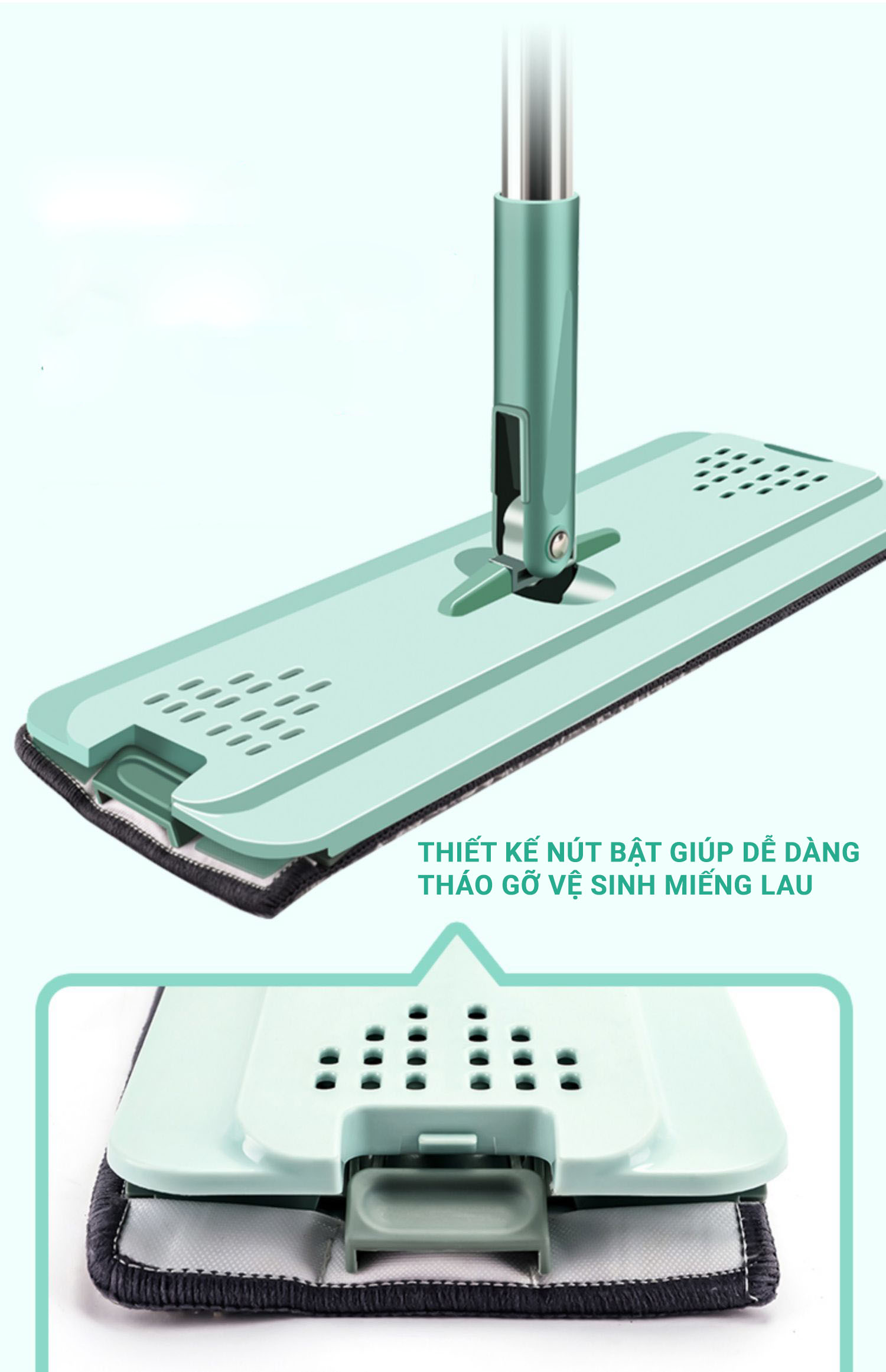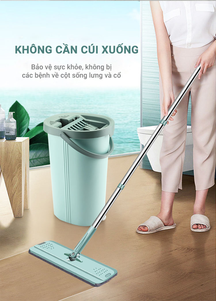 • Trong quá trình lau dọn, thao tác kéo và đẩy rất nhẹ nhàng cũng như việc giặt và vắt khô bông lau thì một xô nước là đủ để giải quyết toàn bộ phòng ngủ, hoặc phòng khách của bạn.