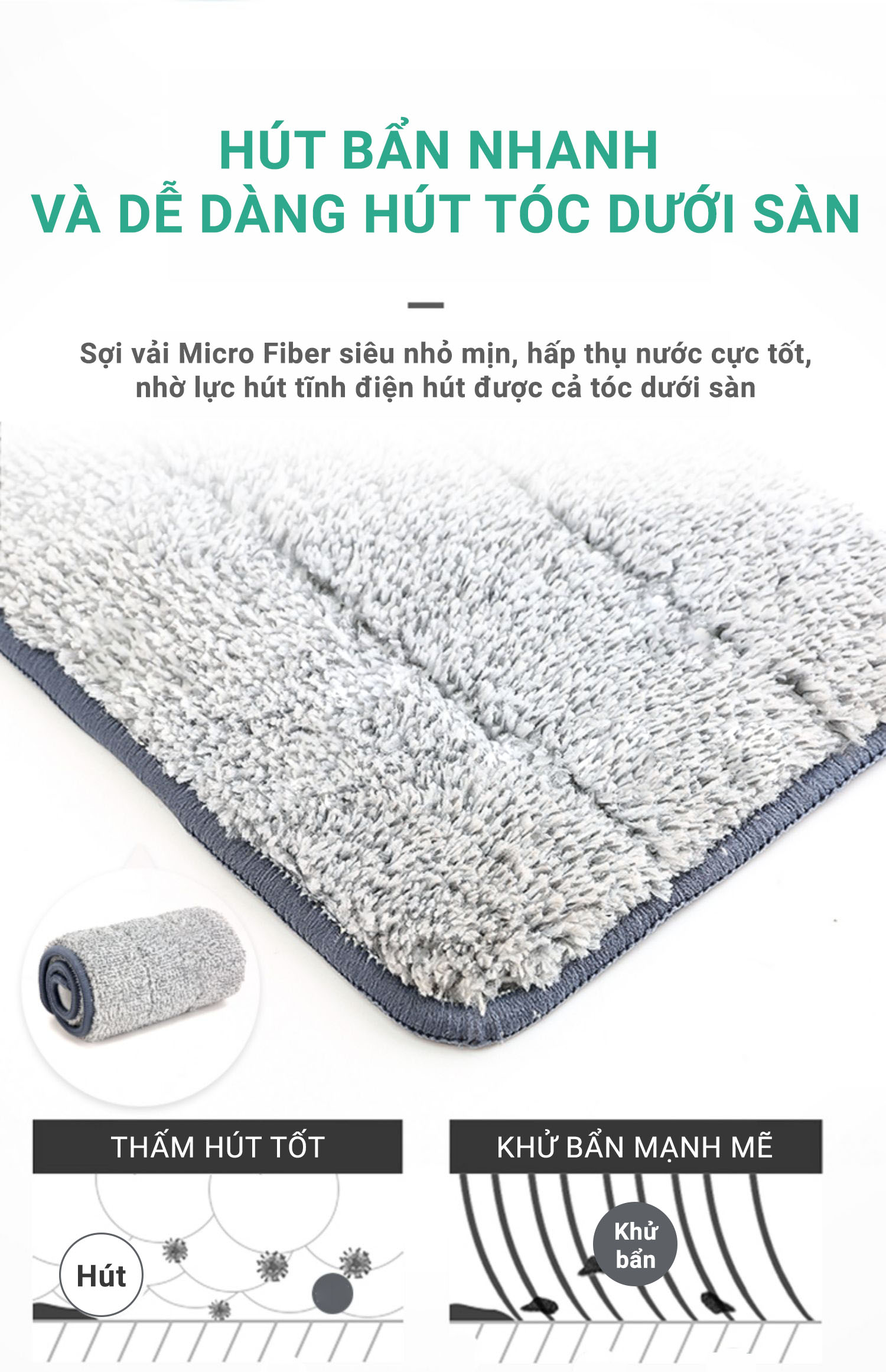 • Bông lau với các đường chỉ may chắc chắn và công nghệ lực hút tĩnh điện hiệu quả tuyệt đối.