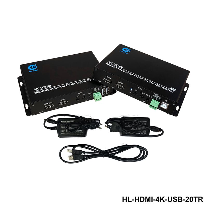 HDMI EXTENDER HDMI HOLINK| PN: HL-HDMI-4K-USB-20T/R Bộ Kéo dài HDMI qua cáp quang 4K có cổng USB được thiết kế để giải quyết vấn đề chất lượng hình ảnh, biến dạng màu sắc và khả năng