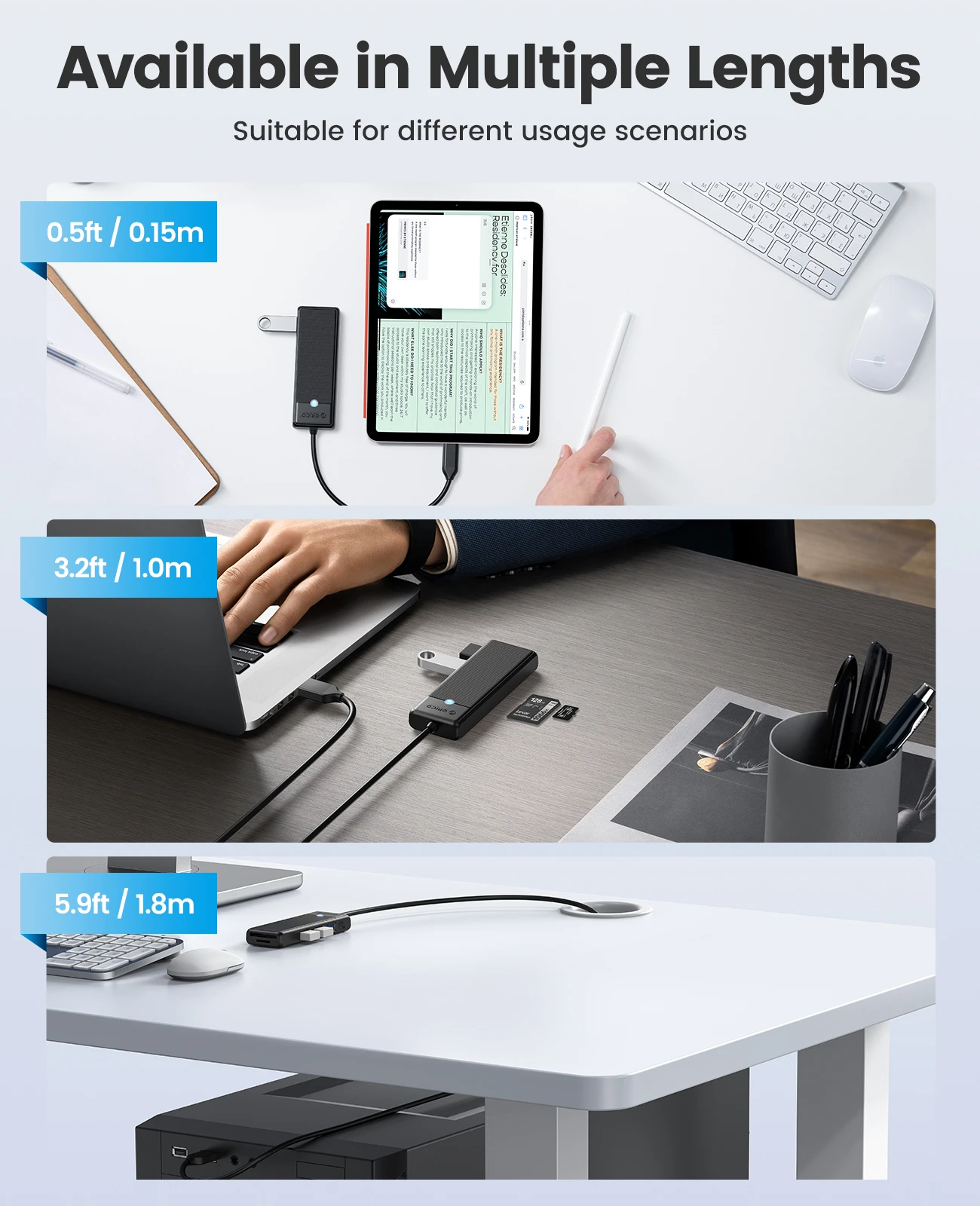 1. Number of ports: 4 2. USB 3.0 SuperSpeed 5Gbps speed ️ Plug & Play plug and play 3. Connector: USB-A 4. Cable length: 1 meter 5. Compatible with Windows, Linux and Mac 6. 100