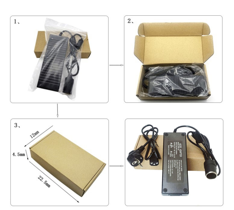 Bộ chuyển đổi từ điện 220V sang tẩu xạc 12V trên xe hơi, công suất 120W.