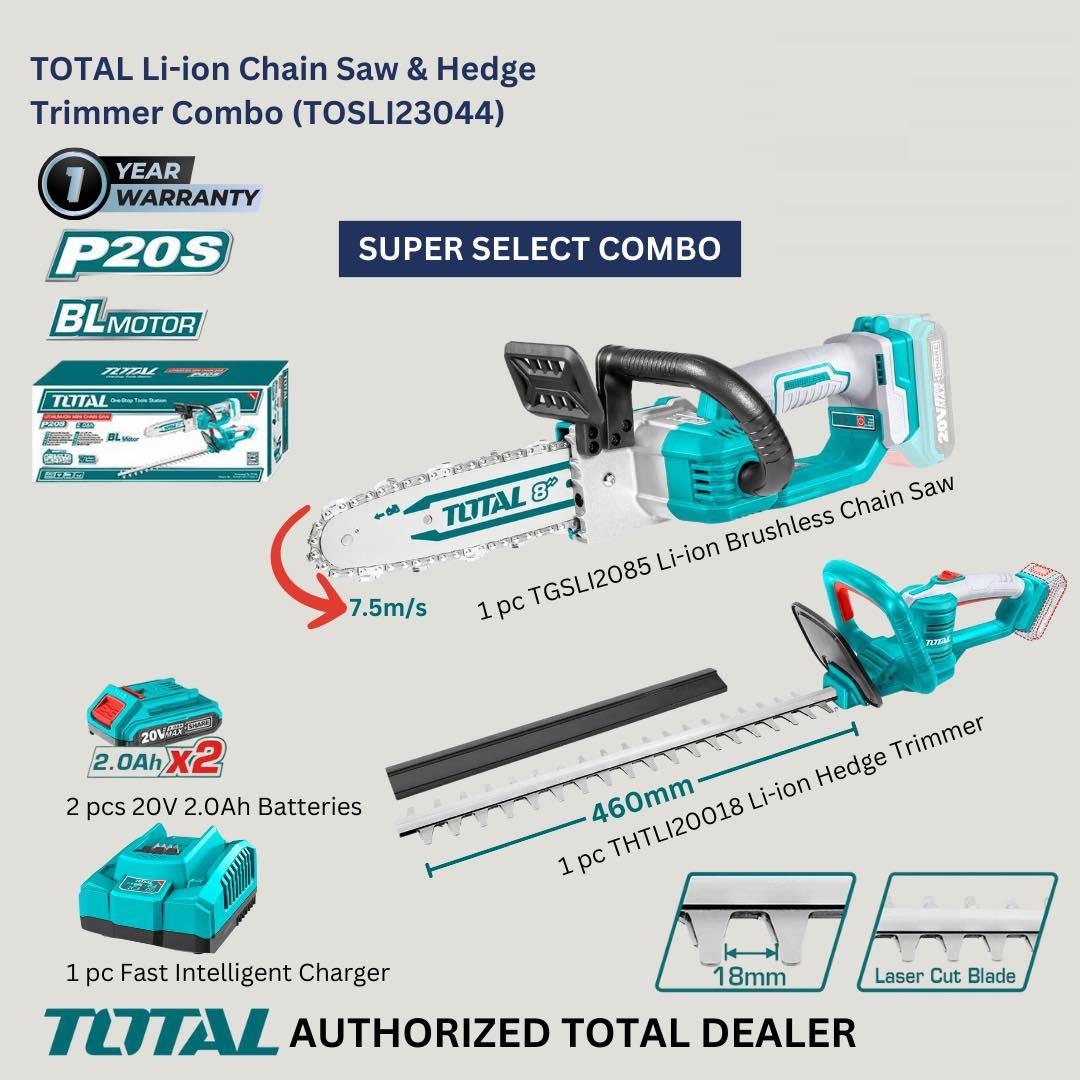 ✨BỘ COMBO MÁY CƯA XÍCH TGSLI20851 & MÁY CẮT HÀNG RÀO THTLI20018(2 pin 20V/2.0Ah+ sạc) TOTAL TOSLI23044 - HÀNG CHÍNH HÃNG