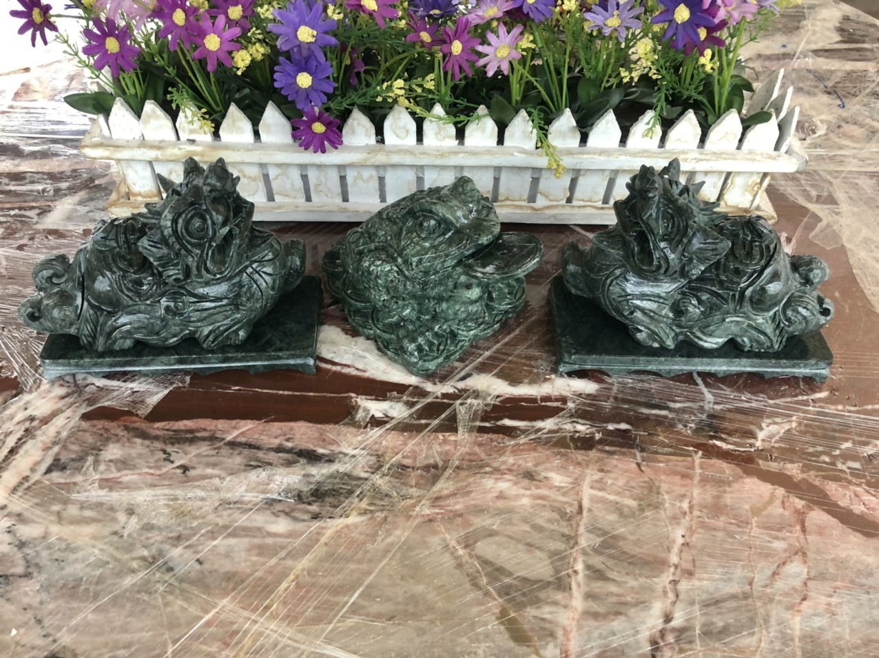 Chất liệu: Đá ngọc Ấn Độ Kích thước: - Thiềm Thừ ( Dài 18 cm x Rộng 14 cm x Cao 11,5 cm ) - Tỳ Hưu ( Dài 17 cm x Rộng 6 cm