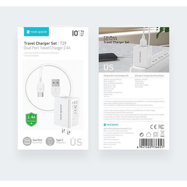 ✨Bộ củ cáp sạc nhanh TypeC Rockspace T39 - Hàng chính hãng