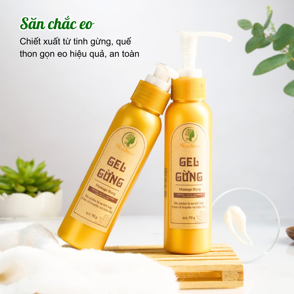 - Cách dùng: Massage bụng với gel gừng tầm 5-10 phút rồi quấn bụng với gen nịt bụng 2-3 tiếng hoặc nguyên ngày.