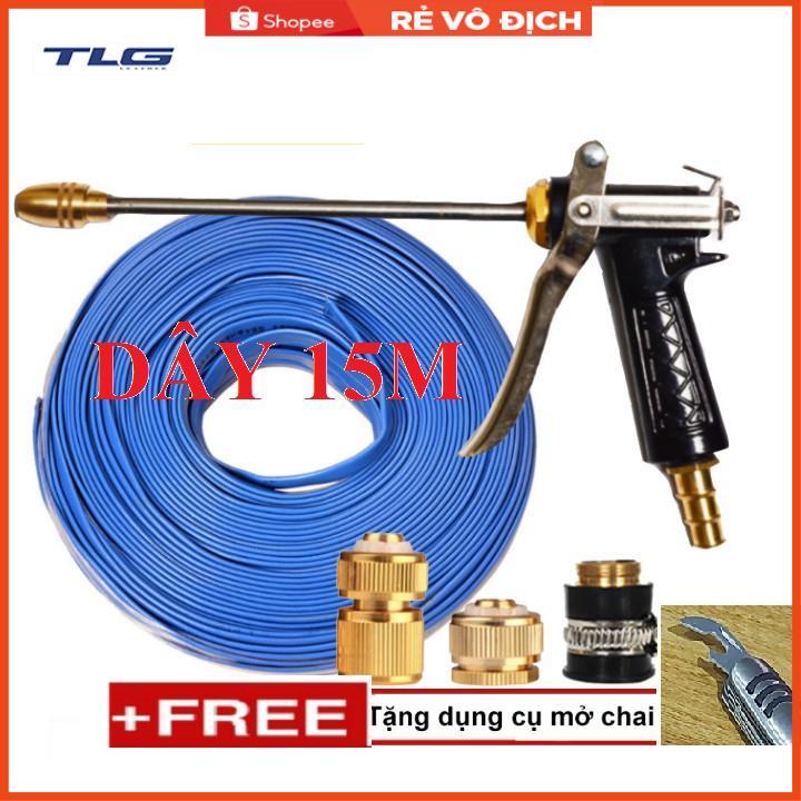✨Bộ dây vòi xịt nước rửa xe, tưới cây . tăng áp 3 lần, loại 15m 206318 đầu đồng,cút đồng+ tặng mở chai