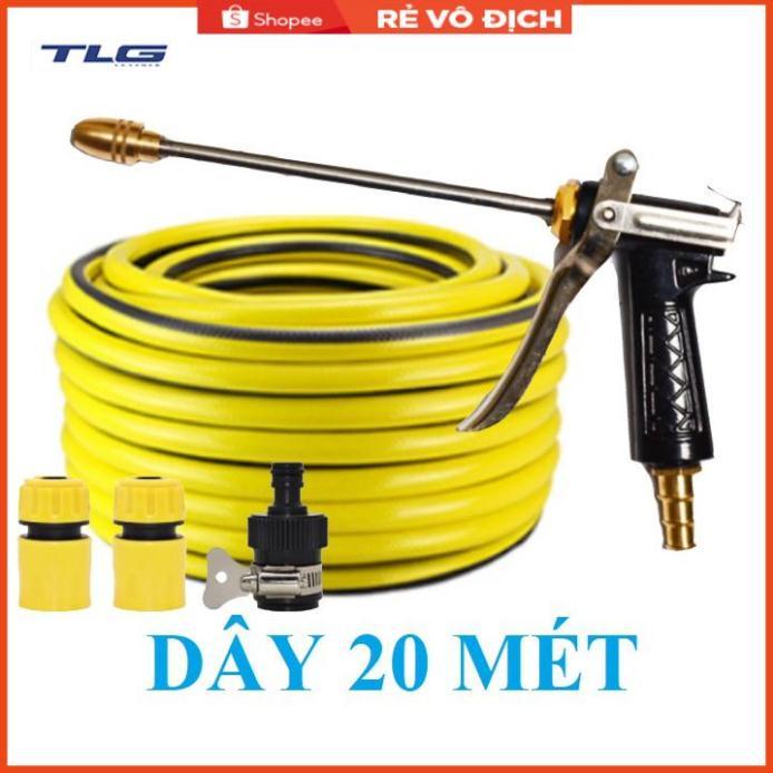 ✨Bộ dây vòi xịt nước rửa xe, tưới cây . tăng áp 3 lần, loại 20m 206318 đầu đồng, cút, nối đen
