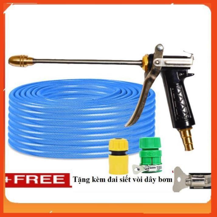 ✨Bộ dây vòi xịt nước rửa xe, tưới cây . tăng áp 3 lần, loại 20m 206318 đầu đồng, cút+ tặng đai