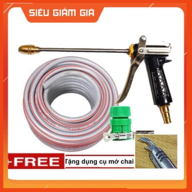 ✨Bộ dây vòi xịt nước rửa xe, tưới cây . tăng áp 3 lần, loại 20m 206318 đầu đồng,đai, + tặng mở chai