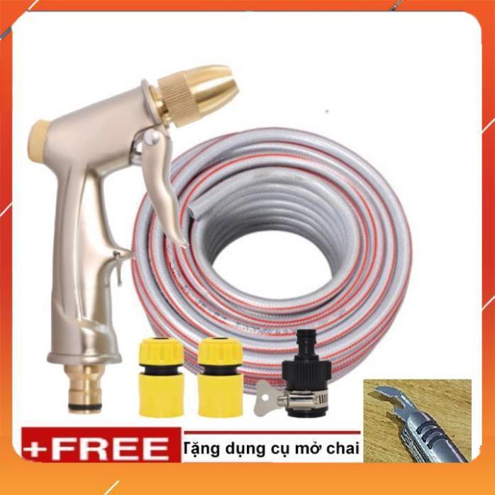 ✨Bộ dây vòi xịt nước rửa xe, tưới cây , tăng áp 3 lần, loại 20m 206701-1 đầu đồng,cút,nối nhựa đen + mở chai