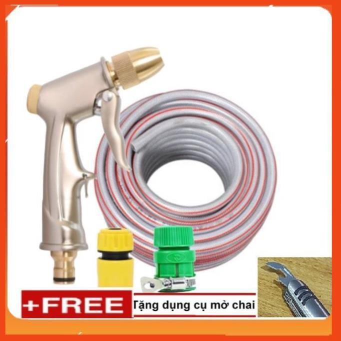 ✨Bộ dây vòi xịt nước rửa xe, tưới cây . tăng áp 3 lần, loại 20m 206701-1 đầu đồng,cút,nối vàng+tặng mở chai