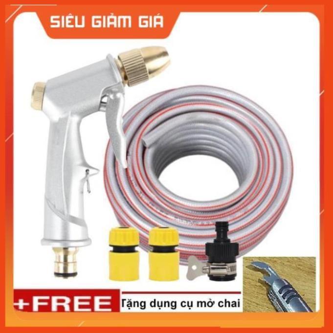 ✨Bộ dây vòi xịt nước rửa xe, tưới cây . tăng áp 3 lần, loại 20m 206701 đầu đồng, cút,nối đen+ tặng mở chai