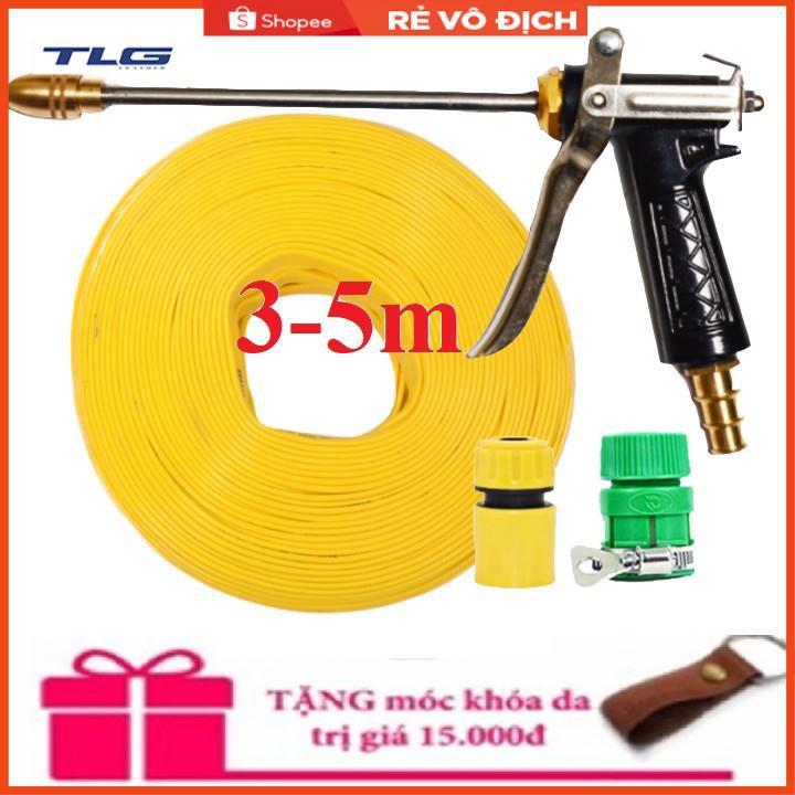 ✨Bộ dây vòi xịt nước rửa xe, tưới cây . tăng áp 3 lần,loại 3m,5m 206318 đầu đồng,cút,nối nhựa vàng+ tặng móc khoá