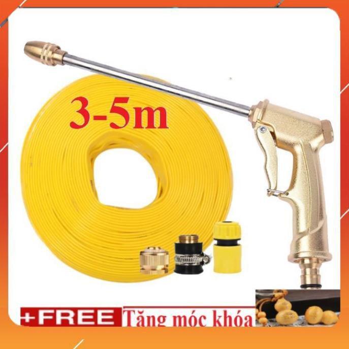 ✨Bộ dây vòi xịt nước rửa xe, tưới cây , tăng áp 3 lần, loại 3m, 5m 206701-3Dđầu đồng,cút,nối đồng+ móc khoá
