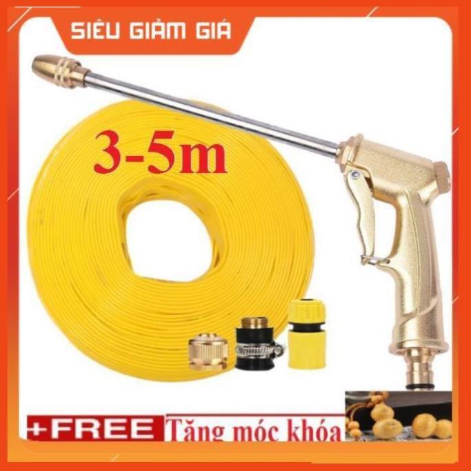 ✨Bộ dây vòi xịt nước rửa xe, tưới cây . tăng áp 3 lần, loại 3m, 5m 206701-3Dđầu đồng,cút,nối đồng+ tặng móc khoá