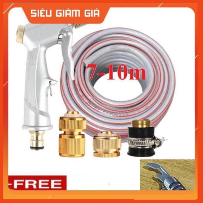 ✨Bộ dây vòi xịt nước rửa xe, tưới cây . tăng áp 3 lần, loại 7m,10m 206701 đầu đồng,cút đồng,+tặng mở chai