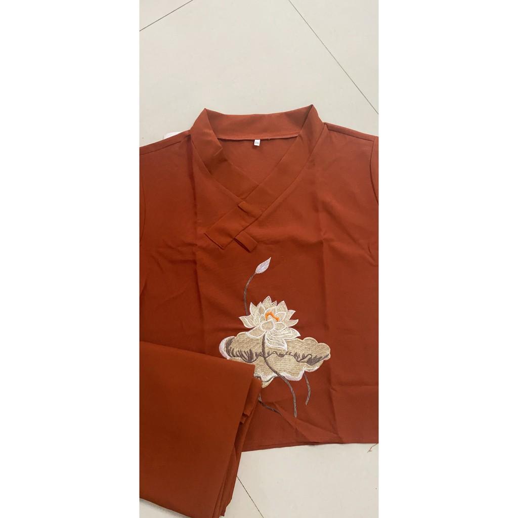 ✨Bộ Đi Lễ Chùa - Đồ Lam Nữ Đi Chùa Đẹp Cao Cấp Trang Nhã Vải Ford Cao Cấp Thêu Hoa Sen 2021 Dành Cho Phật Tử - AL006