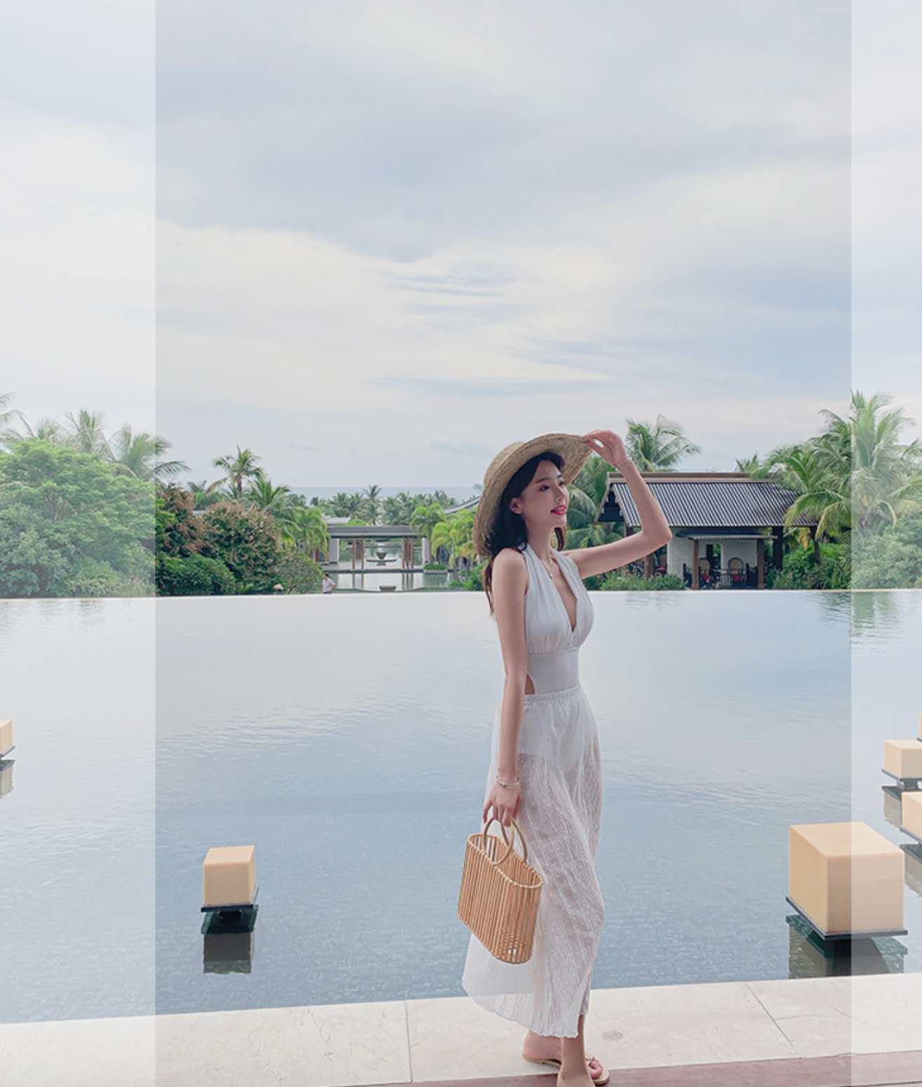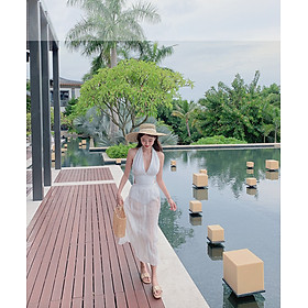 - Chất vải nhung tuyết mềm, co giãn tốt, mặc vừa ôm sát mà vẫn tạo sự mềm mại. - Đồ bơi trắng nhưng nhờ dáng váy chữ A xoè nên mặc sẽ cực kì