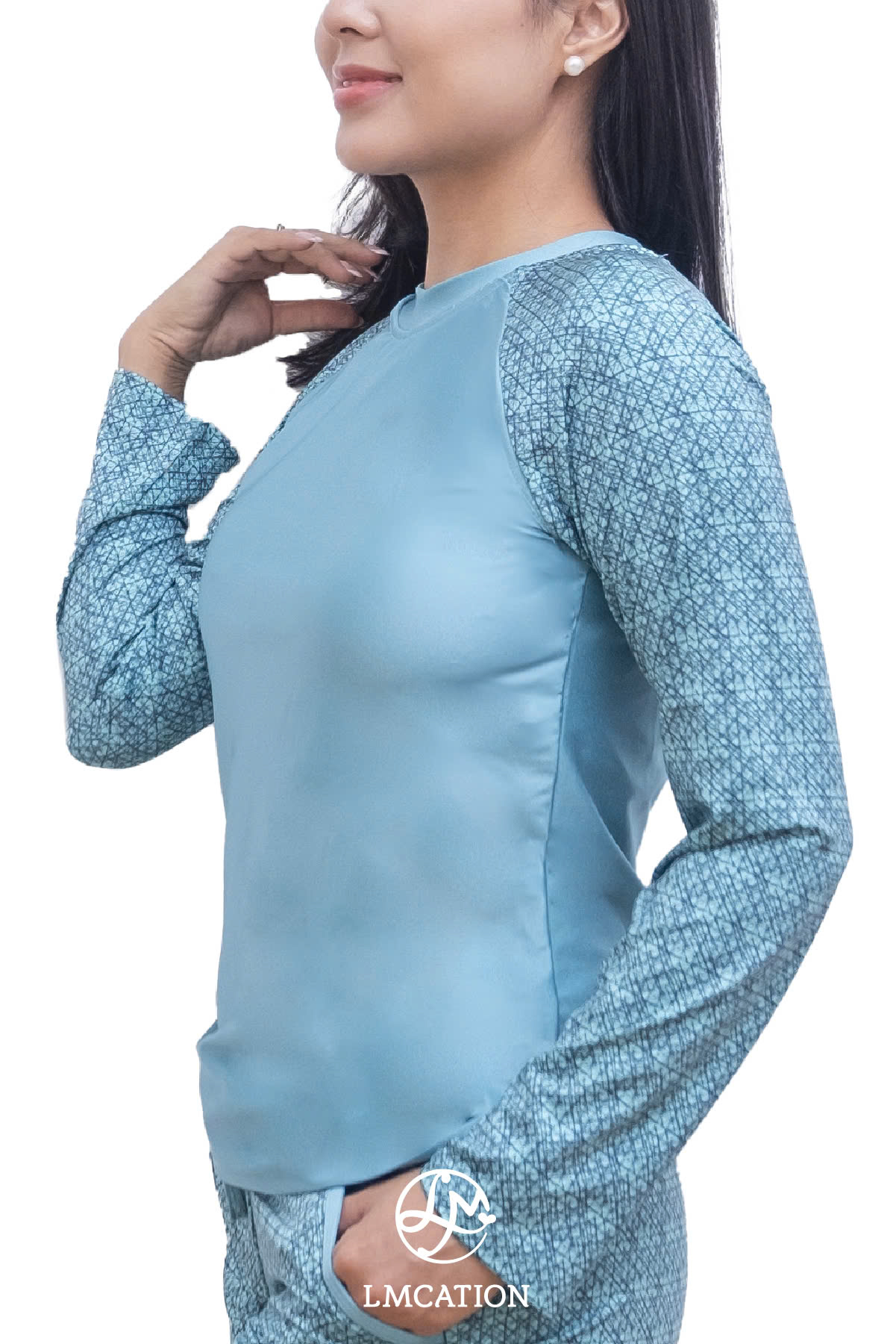 ✨Bộ đồ bơi nữ tay dài LMcation Quinn- Xanh ngọc thổ cẩm