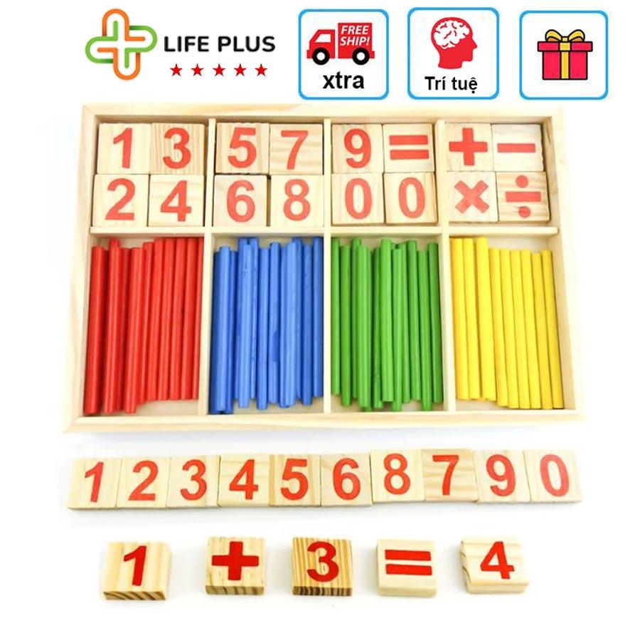 Hộp que tính chữ số và phép tính bằng gỗ cho bé