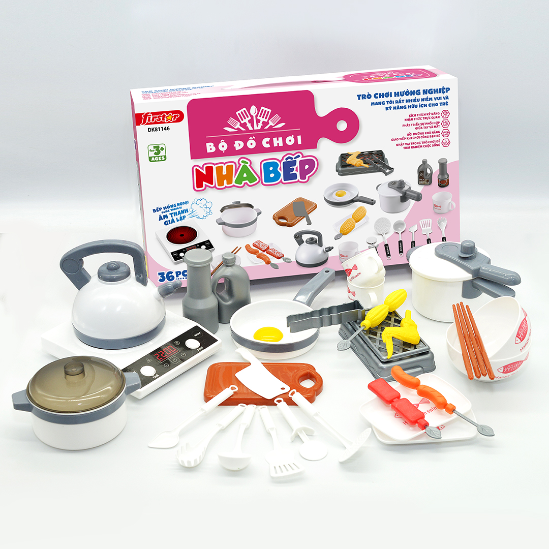 Mua tại TiktokBộ đồ chơi nhà bếp (màu hồng) DK 81146 Bộ đồ chơi nhà bếp là dòng sản phẩm đồ chơi trẻ em được thiết kế mô phỏng giống như một nhà bếp nấu ăn, các món ăn, các dụng cụ nhà bếp, hoặc các nguyên liệu nấu ăn,ới 36 chi tiết là những món đồ có nhiều màu sắc bắt mắt, kiểu dáng xinh xắn phù hợp cho cả bé trai và bé gái thỏa sức vui chơi, sáng tạo nhập vai thành người đầu bếp với các món ăn yêu thích hàng ngày. Khi chơi trò chơi sẽ giúp cho trẻ: