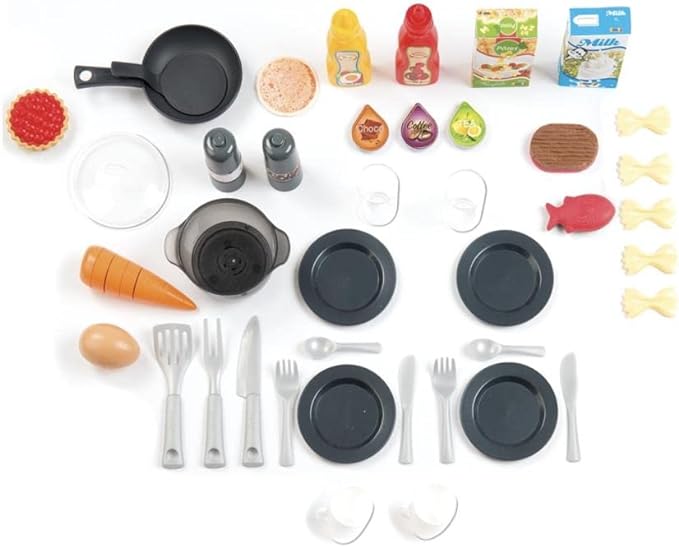 - 19.5 × 81 × 73.5 cm BẾP CHƠI LỚN - Nhà bếp Teval Evo khiến các đầu bếp nhỏ rất vui vẻ. Nhiều chức năng và trạm vui chơi đảm bảo niềm vui đa dạng và lâu dài. Rất nhiều điều để khám phá - Mì đổi màu ngay khi được cho vào nước, nước trong nồi thực sự sủi bọt, từ vòi bạn có thể bơm nước thật và hơn thế nữa Nhà bếp cùng bạn phát triển - để những đứa trẻ nhỏ tuổi nhất có thể vui chơi vào bếp lâu nhất có thể, chiều cao của bề mặt làm việc có thể tăng từ 50 lên 58 cm chỉ trong vài bước đơn giản. Rất nhiều phụ kiện - máy lắc muối và hạt tiêu, đĩa, dao kéo, ly, cốc, cá, thịt, bao bì rỗng, sốt cà chua, sốt mayonnaise, nồi, chảo và một quả trứng đảm bảo rằng mọi món ăn đều thành công Chất lượng Smoby từ năm 1924 - Thông qua việc kiểm soát chất lượng liên tục, nhiều năm kinh nghiệm, sử dụng vật liệu chất lượng cao và cơ sở sản xuất hiện đại, chúng tôi đảm bảo đồ chơi an toàn