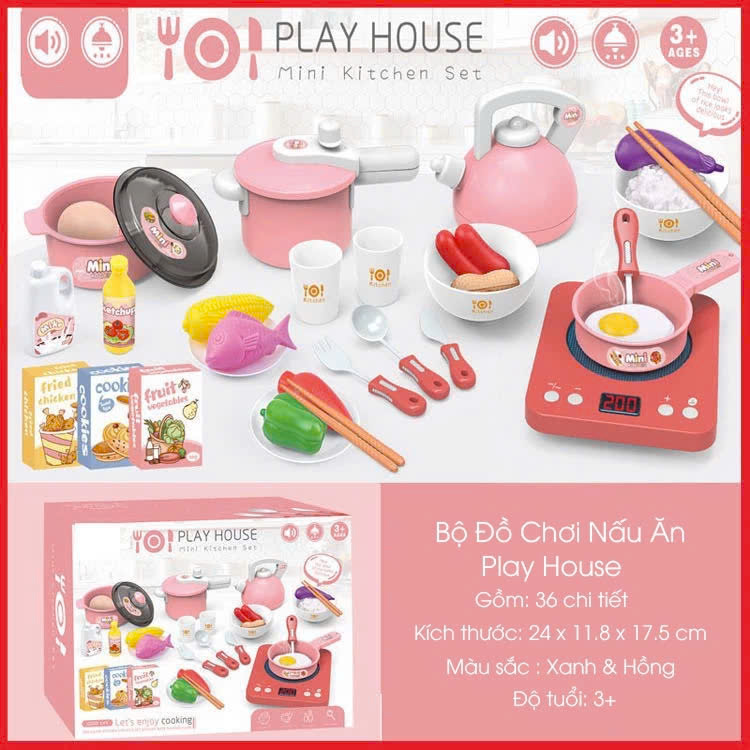 Bộ đồ chơi nấu ăn 36 món có bếp có nhạc và đèn, thiết kế y như thật, cho bé từ 2 đến 8 tuổi