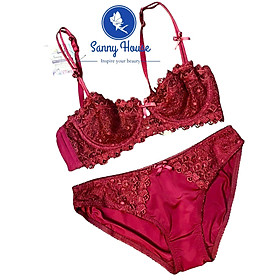Thương hiệu: Sanny House Tên sản phẩm: Bộ đồ lót cúp ngang 3/4 Chất liệu: ren cao cấp mềm mịn, co giãn, thấm hút tốt Kiểu dáng: gợi cảm, trẻ trung, hiện đại Màu: đỏ