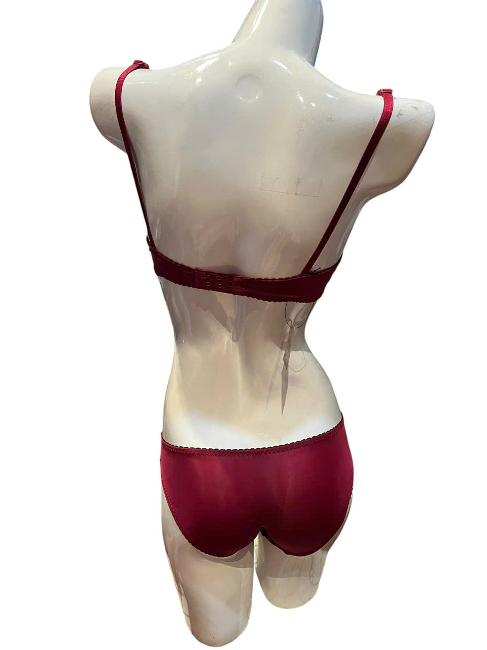 Màu sắc: Đỏ đô Chất liệu: Ren mềm BRA: Fresize và có tăng đơ điều chỉnh độ rộng, móc gài sau lưng QUẦN Chữ Y/Đùi: - S: V3 dưới 80cm - M: V3 từ 80-95cm