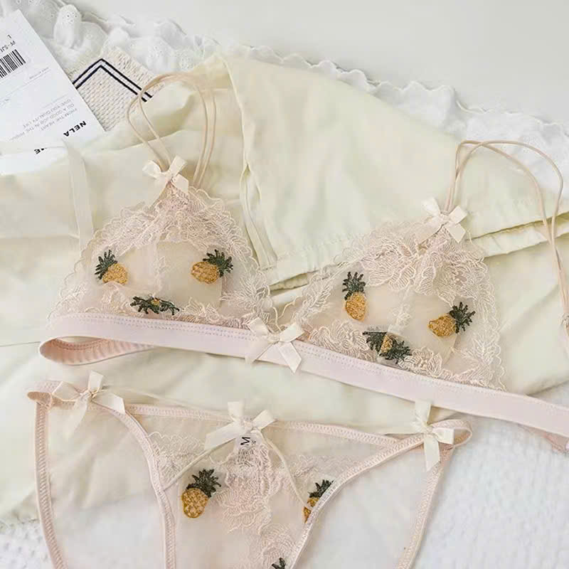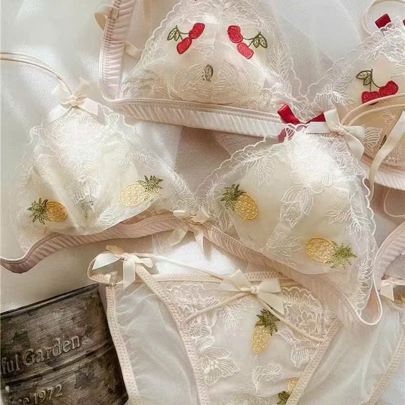 ✨Bộ Đồ Lót Trái Thơm Thêu Không Gọng Mút Mỏng Xinh Xắn