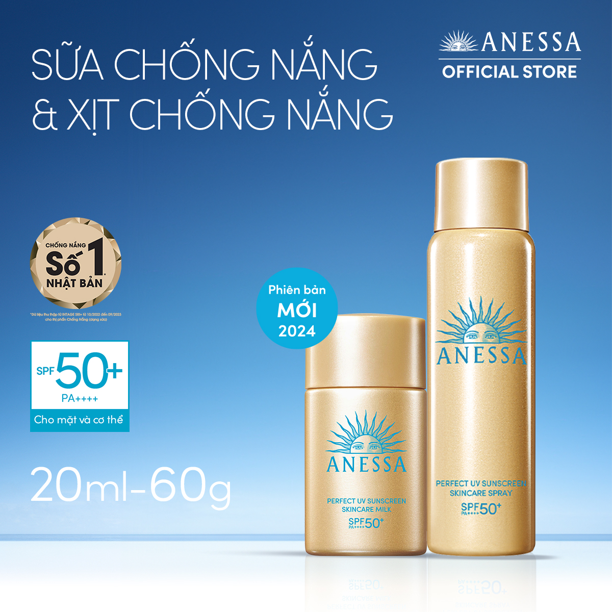 ✨Bộ đôi Kem chống nắng dạng xịt dưỡng da bảo vệ hoàn hảo + Kem chống nắng dạng sữa dưỡng da kiềm dầu bảo vệ hoàn hảo (Anessa Gold Spray 60g + Gold Milk 20ml)