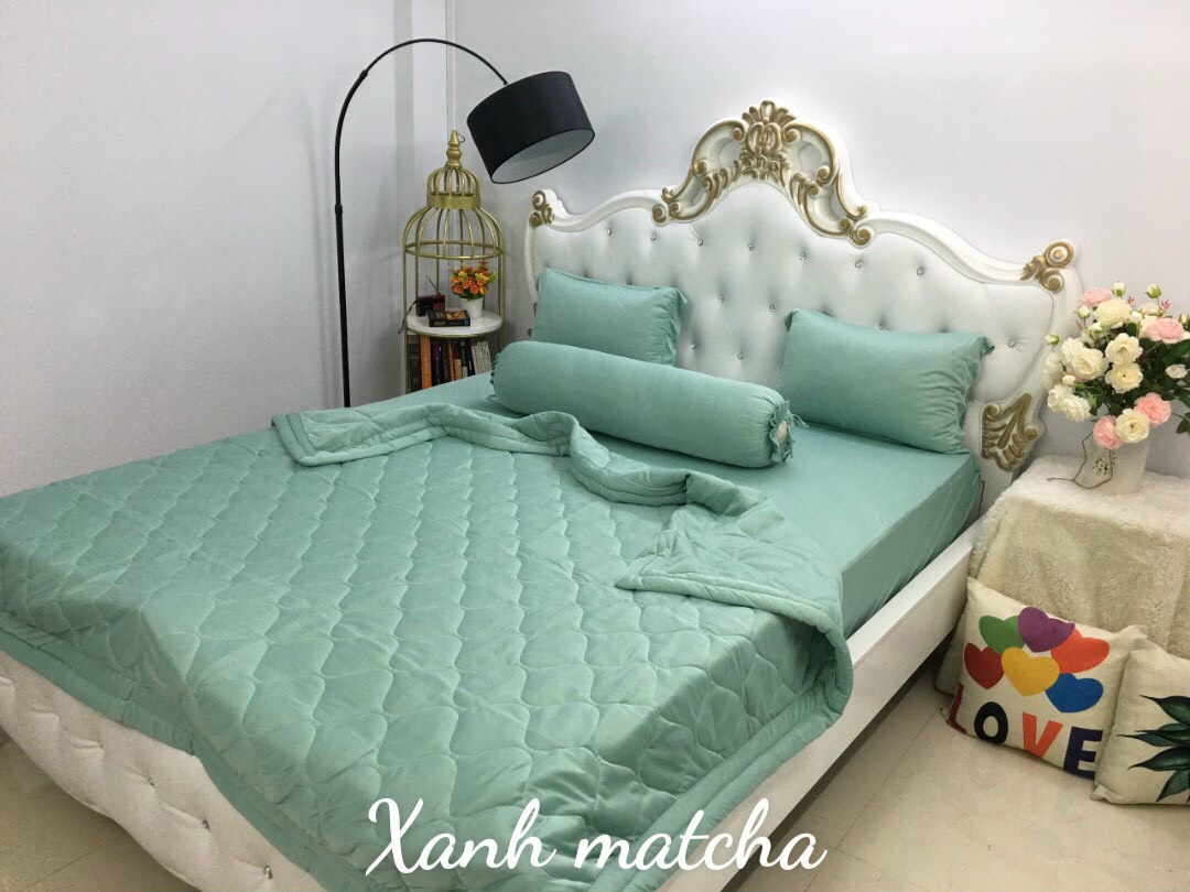 *Sét gồm 4 món - 1 chăn đã Chần bông micro siêu mềm mịn kích thước 2m2x2m - 1 ga chun may theo size yêu cầu của khách hàng ( có cả ga phủ) -