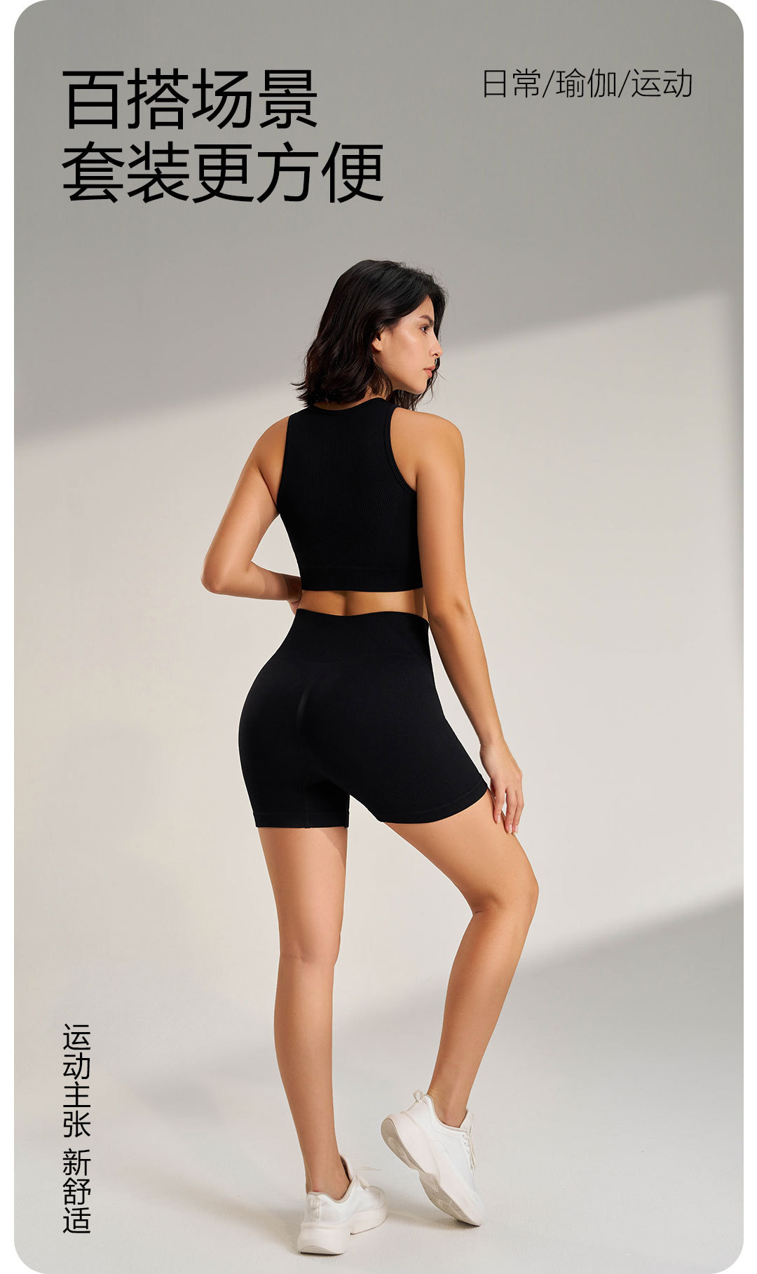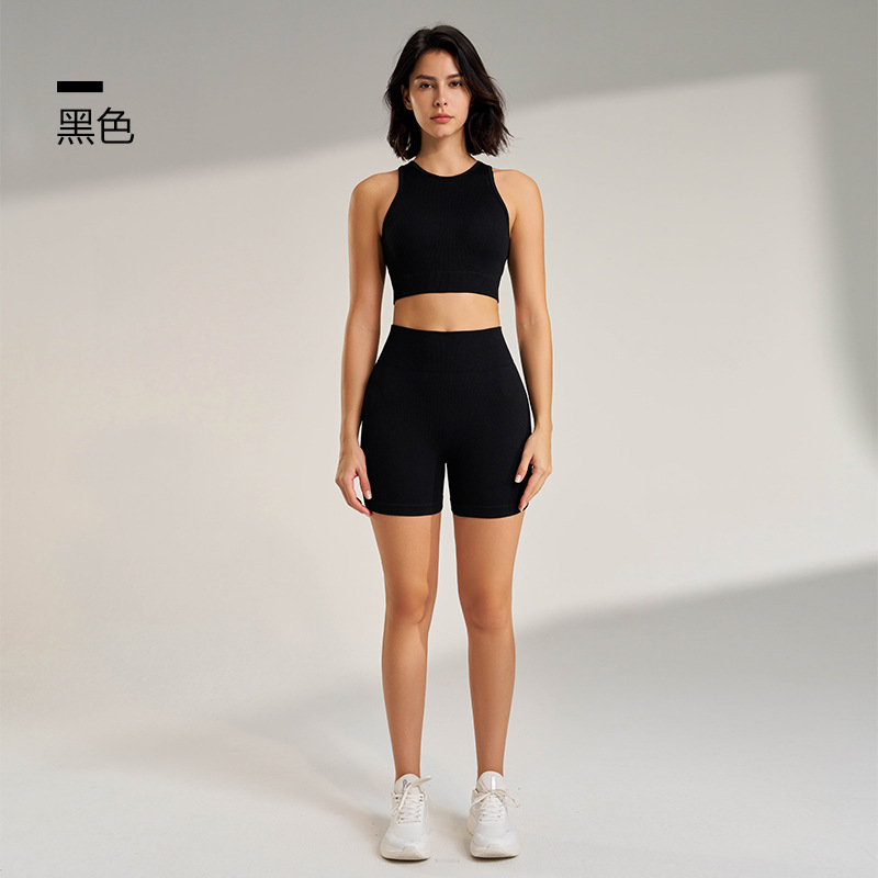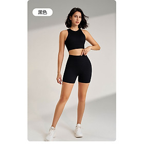 Chất liệu : thun dệt gân dày dặn, co giãn 4 chiều , thoáng khí , thấm mồ hôi tốt Kiểu dáng : quần ngắn cạp cao , áo 2 dây , phần mông có