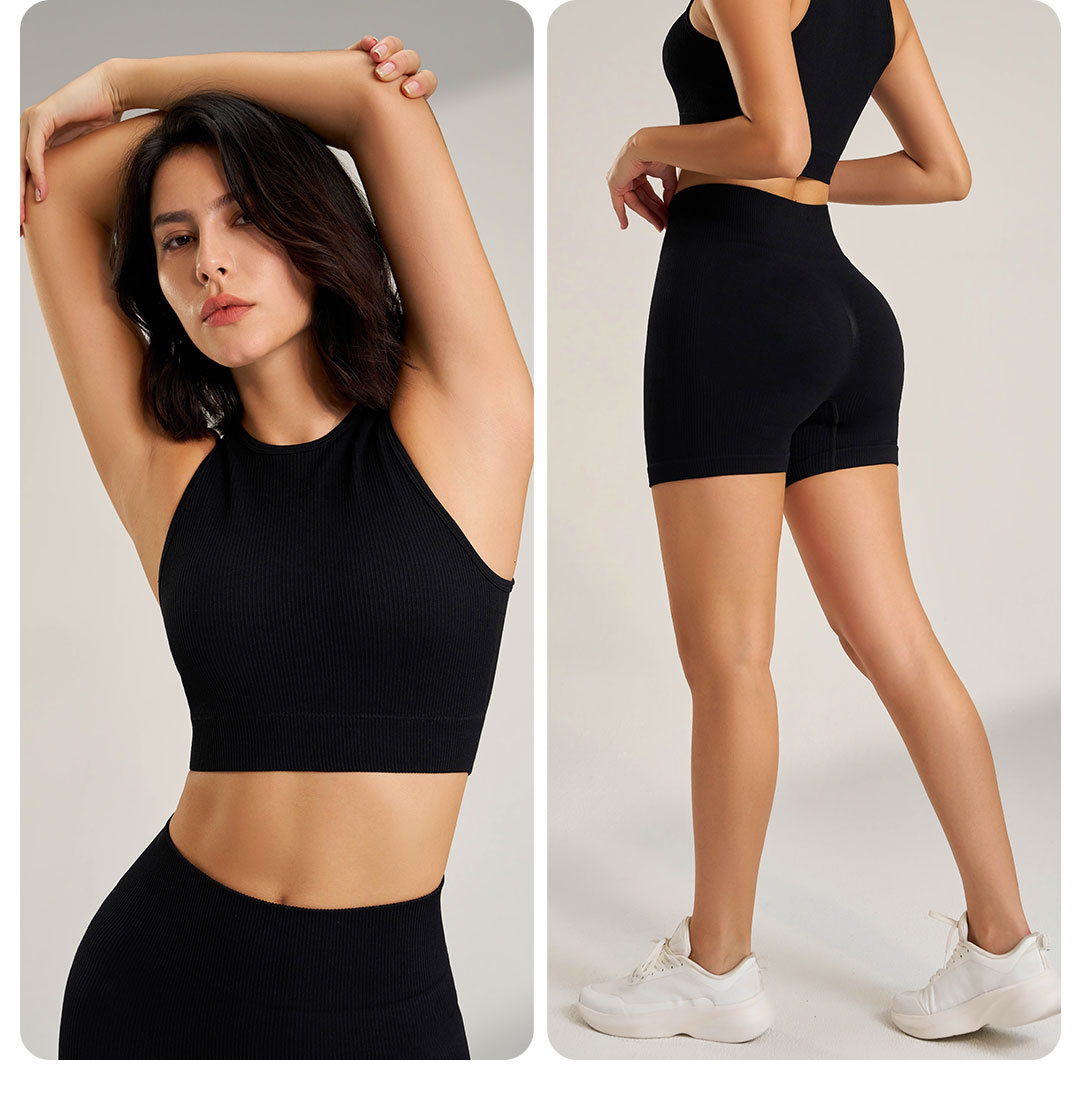 ✨Bộ Đùi Yoga Nữ Dệt Kim Áo Mút Lót Đúc Liền Quần Đùi Nhún Mông Co Giãn Tốt Nhanh Khô