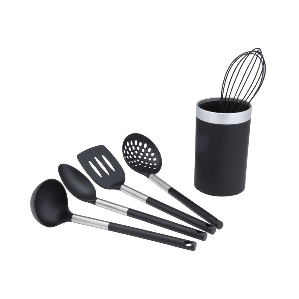 Bộ dụng cụ nhà bếp INOCHI Chất liệu: Nhựa PA cao cấp an toàn cho sức khỏe Kích thước: 145x145x394mm Đặc tính sản phẩm: - Bộ dụng cụ không làm trầy xước lớp chống dính