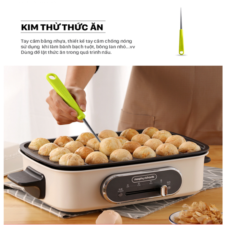 - Màu sắc phóng khoáng và bắt mắt, giúp việc nấu nướng trở nên thú vị hơn. Kích thước nhỏ gọn ko tốn diện tích cùng giá treo tiện ích đi kèm tô điểm thêm cho căn bếp của bạn Bộ sản phẩm Morphy Richards MR1032 gồm : 1 : Muỗng Phẳng ( L285W70 H45mm ) / Sử dụng chiên xào với góc bo tròn thích hợp dùng cho chảo phẳng . 2 : Muỗng Phẳng Nhỏ ( L266W40H44mm ) / Thiết kế dài + góc cạnh uốn cong sử dụng làm bánh , nướng bánh lấy bánh dễ dàng , ko làm hỏng , vỡ bánh 3 : Muỗng Súp Lớn ( L285W80H41mm ) / Dùng khuấy súp đặc như các món cháo , súp , canh hầm 4 : Muỗng Thủng ( L285W67H42mm ) / Sử dụng cho mì sợi , bánh bao hay cơm nắm Dùng để vớt thực phẩm ra khỏi nước. 5 : Cọ Quét Dầu ( L240W43H28mm ) / Sử dụng quét dầu , gia vị , mật ong , màu lên thực phẩm hoặc lên chảo . Dùng làm sạch bề mặt chảo 6 : Kẹp ( L285W25H58mm ) / Thiết kế góc kẹp rộng ( Tay cầm chắc chắn ) Sử dụng gắp , kẹp thực phẩm có kích thước và trọng lượng lớn như : Sườn nướng , bít tết 7 : Kim châm thực phẩm ( L240W23H14mm ) / Với đầu nhọn sử dụng lật bánh dùng cho chảo Takoyaki. 8 : Giá treo tiện ích ( L143W143H380mm ) / Thiết kế tròn , gọn gàng , lưu trữ dễ , tiết kiệm không gian