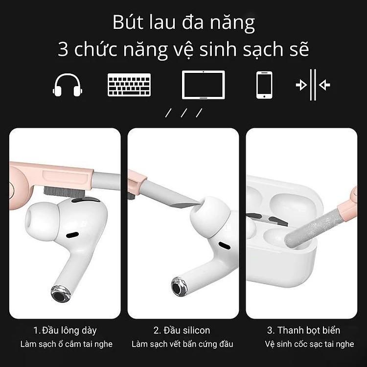 - Mạnh mẽ: Đầu silicone loại bỏ các vết bẩn cứng đầu trong các kẽ hở của tai nghe, nút bấm và các vật dụng khác.