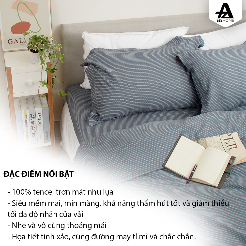 Mua tại TiktokBộ Ga Giường 4 Món Little Stripes Mềm Mại, 100% Tencel Cao Cấp A2Z Home Những dải sọc nhuyễn mang gam màu xám đen mạnh mẽ, vô cùng cá tính và trẻ trung. Hãy cùng A2Z Home đón mùa của nắng, dịu dàng mà gay gắt, rực rỡ như đang căng hết sức lực để làm bừng sáng không gian phòng ngủ qua bộ sưu tập Summer. CHẤT LIỆU SẢN PHẨM