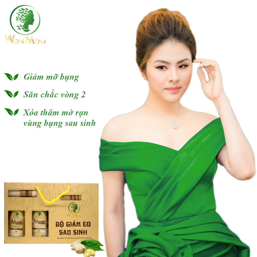 - Giới thiệu: Bộ giảm eo sau sinh Wonmom là 1 trong số những sản phẩm được yêu thích nhất của các mẹ bỉm sữa. Bộ sản phẩm bao gồm: 4 hộp muối thảo dược giảm eo, 1 chai dầu gừng thiên nhiên đánh tan mỡ, 1 đai quấn muối và 1 gen nịt bụng.