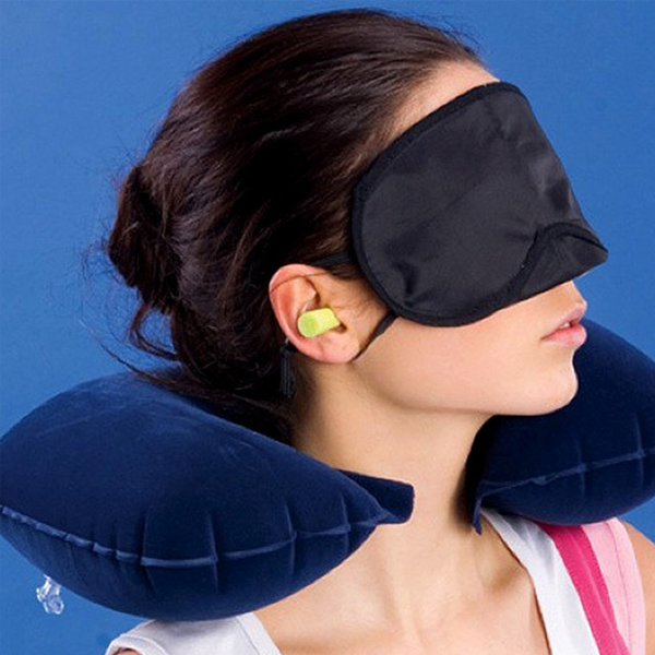Bộ gối hơi, bịt mắt ngủ, bịt tai giảm ồn 3 trong 1, giấc ngủ ngon giấc ngủ sâu ngủ say hơn. Gối hơi du lịch, gối tựa cổ đa năng tự bơm, Tựa Đầu