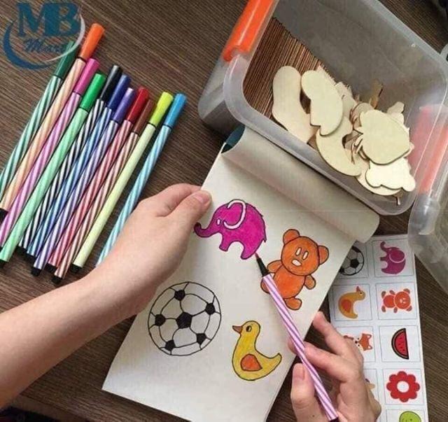 Bộ đồ chơi được thiết kế là khung hình các con vật, cỏ, cây, hoa, lá giúp bé có thể vẽ được bức tranh mà bé muốn, giúp bé phát triển khả năng nghệ thuật.