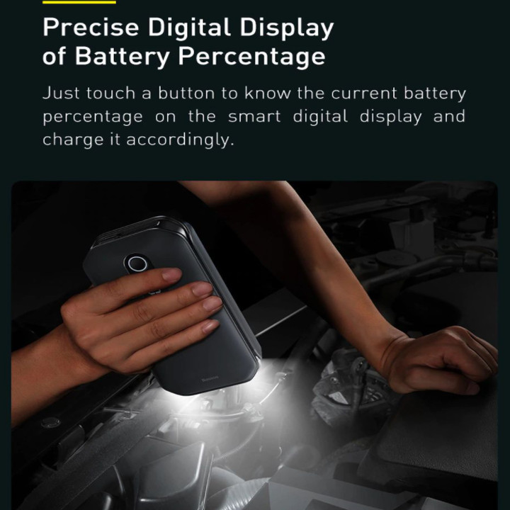 - Bộ kích kiêm sạc dự phòng dùng cho xe ô tô Baseus CRJS03-01 là sản phẩm sử dụng giúp tài xế xử lý trong tình huống bình ắc quy của xe hết điện. Sản phẩm này có thể sử dụng tốt cho Xe máy, xe mô tô, xe ô tô máy xăng và xe ô tô máy dầu