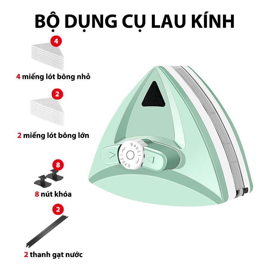 bộ lau kính 2 mặt nam châm hút mạnh mẽ