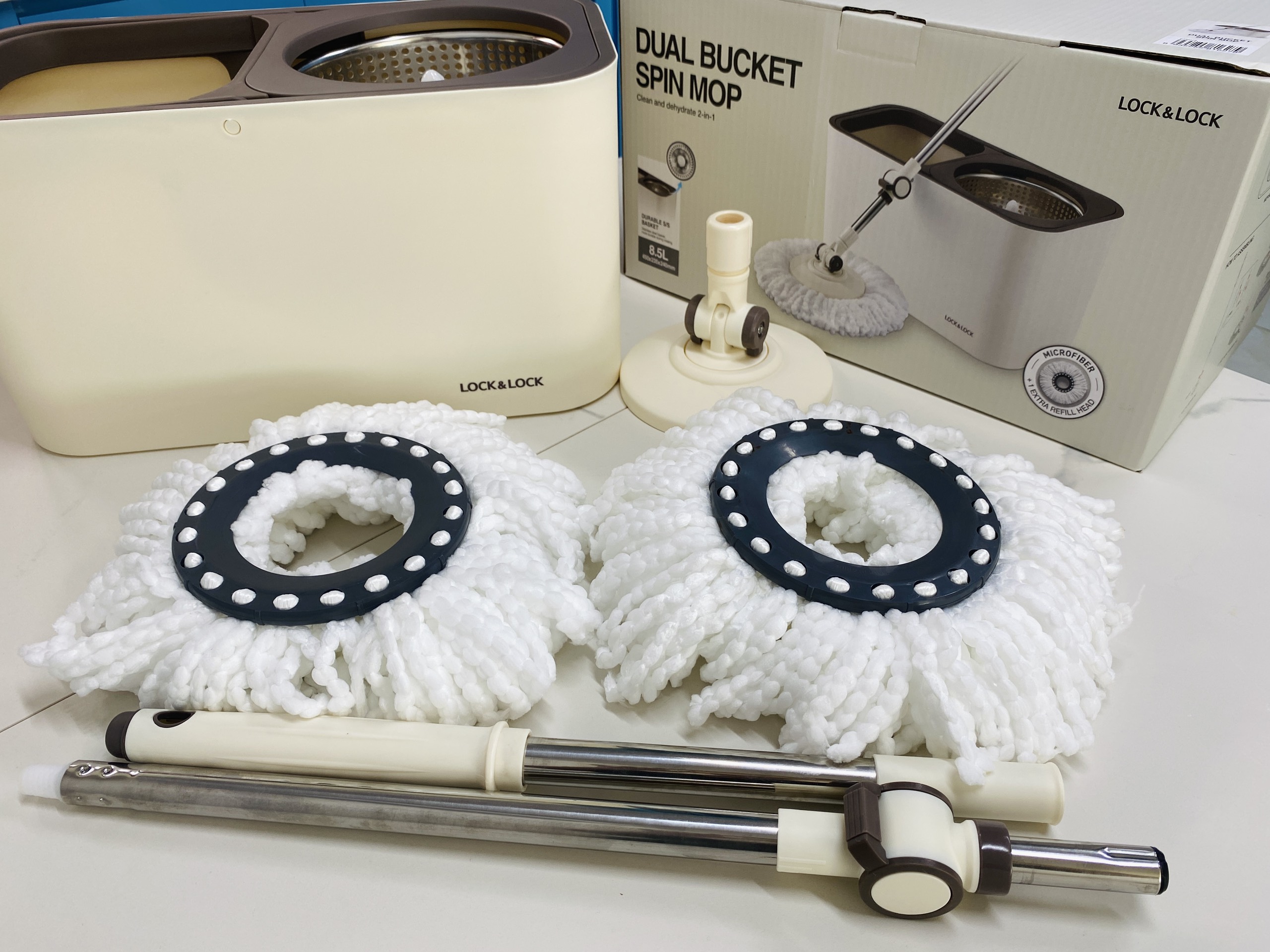 ✨Bộ Lau Nhà Xoay Tay Lock&Lock Dual Bucket Spin Mop ETM478 ( thùng giặt , cây , 2 bông lau)